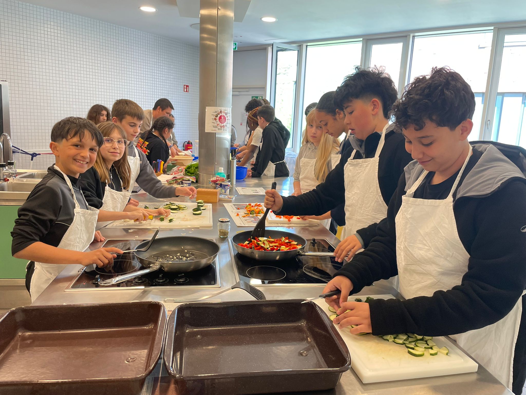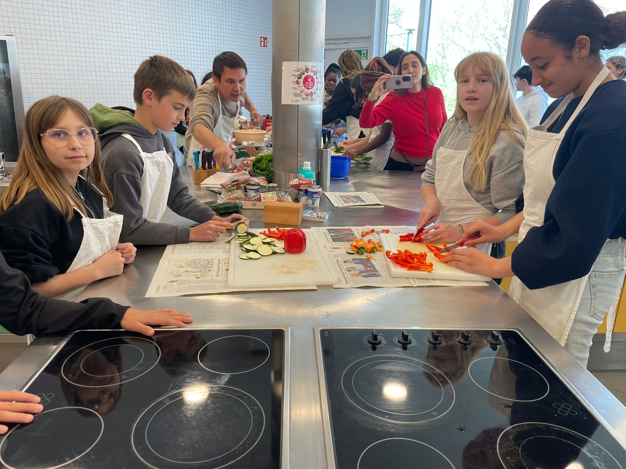 Journée complète au collège/lycée avec au programme cours de SVT sur la pêche durable, cours collaboratifs en 3 langues,un peu de cuisine et d'arts plastiques + préparation de quiches et tartes salées.